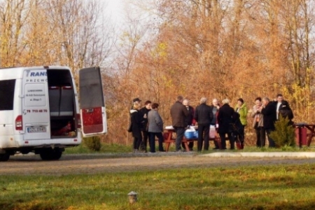 Zastałam ich na parkingu podczas posiłku – przyjechali przed czasem i rozpakowali swój prowiant. Już z daleka wyglądali na zgraną grupę, która lubi być ze sobą. Wszyscy z jednej wsi Rzeszówek wraz z sołtysem. Wieś podobna wielkością do naszej – około 190 osób, o takich miejscowościach, które są podobne i nawiązują ze sobą kontakt mówi się „partnerskie”.