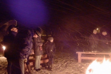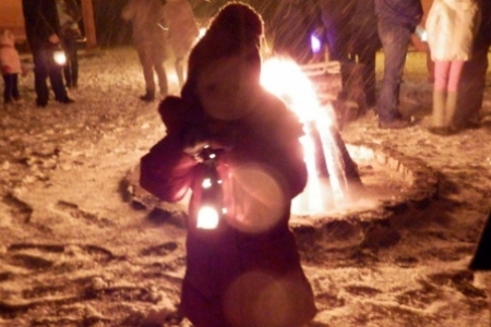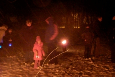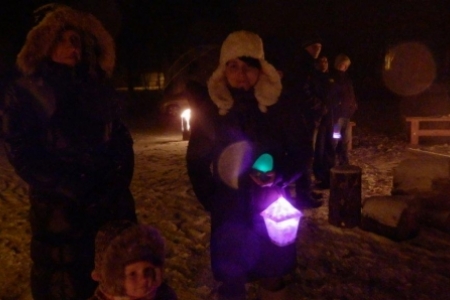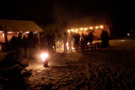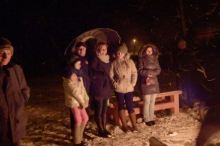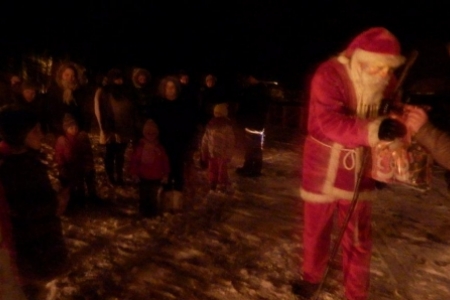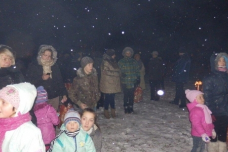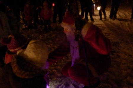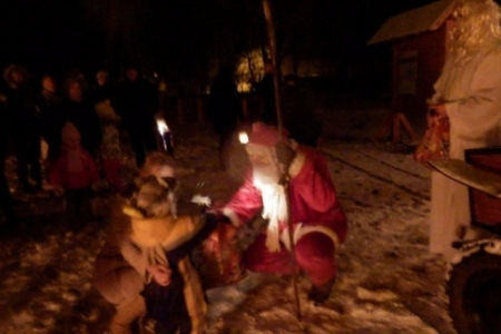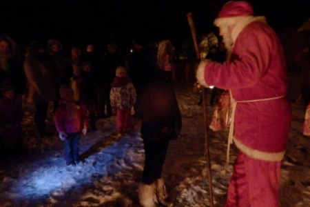 W Rudzie po zmroku, na dachach wiat zapłonęły światełka a pośrodku placu paliło się ognisko. Przed dziewiętnastą z różnych stron Rudy pojawiły się światełka – to dzieci szły z lampionami na zapowiedziane spotkanie z Mikołajem. Wokół ogniska zapłonęły dodatkowo pochodnie - zrobiło się jasno, ciepło ale i tajemniczo. Dzieci przyszły z rodzicami, którzy też chcieli zobaczyć św. Mikołaja – bo przecież wszyscy wierzyli, że się pojawi w Rudzie Milickiej.