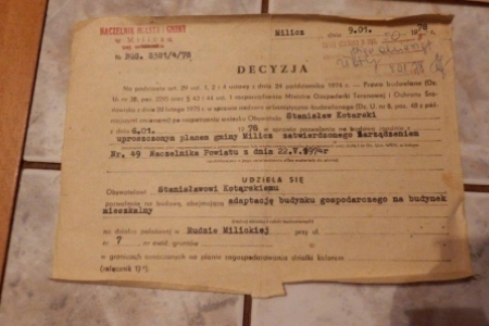 Państwo Stanisławscy wraz z rodziną mieszkają teraz w przystosowanych do celów mieszkalnych zabudowaniach gospodarczych, które były stawiane tuż przed wojną. Mówią, że właściciel niemiecki już przed wojną szykował się do remontu domu pod kolumienkami bo w ogrodzie była część materiałów budowlanych przeznaczonych na ten cel.