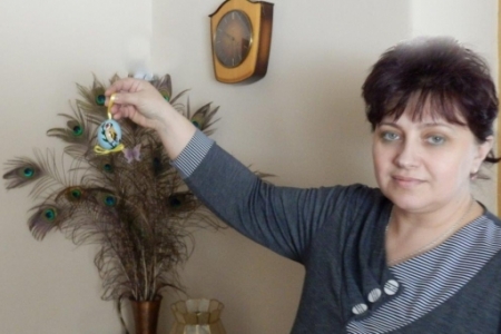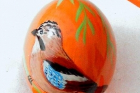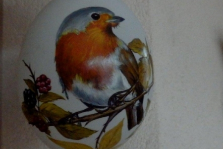 Zdjęcie nr 17: rudzik malowany na dużym szklanym jaju w dawnej fabryce bombek przez p. J. Tarkę