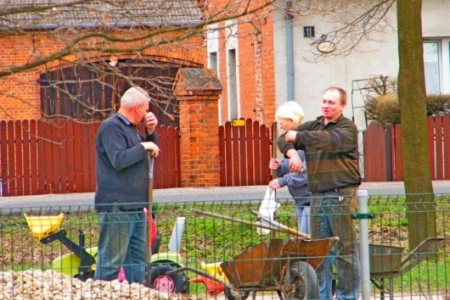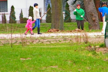 Dwa duże plakaty obwieszczały, że wiosenne porządki czas zacząć. Jak zwykle po późnej jesieni i długiej zimie nagromadziło się sporo zeschłych liści, połamanych gałęzi, trzeba było oczyścić posadzone jesienią rośliny i wykonać najcięższą pracę – rozrzucić, pod płożącymi roślinami w kilku miejscach placu rekreacyjnego, otoczaki.
