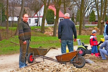 Ta ostatnia praca wymagała męskiej ręki, choć niektóre panie a nawet dzieci również się do tego zabierały. Trzy dni wspólnej pracy i spotkań a efekt zobaczcie sami przychodząc na spacer na plac rekreacyjny. Ci, którzy nie mogli lub nie chcieli się włączyć do tych prac, niech ciepło pomyślą o tych co chcieli i mogli.