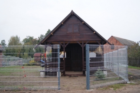 Zakres projektu : budynek drewniany , plac zabaw, altanka, ogrodzenie, zieleń.