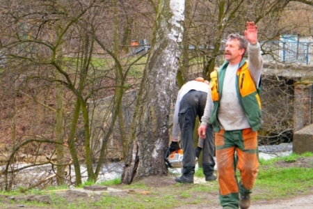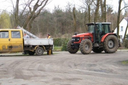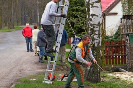 Nikt nie pamięta kto i kiedy je posadził – a lat przybywało. Przechylały się a rosły blisko domu – stawało się coraz bardziej niebezpiecznie. Każdy większy wiatr budził coraz większe obawy, że runął w sposób niekontrolowany. Zebrała się komisja, przyszedł pan Nadleśniczy i postanowili: drzewa trzeba wyciąć. Łatwiej zdecydować a trudno ściąć takie wielkie drzewa rosnące blisko domów i w dodatku na skarpie. Odetchnęliśmy z ulgą, gdy zgodził się na to pan Jerzy Nowacki. Wiedzieliśmy, że ma doskonały sprzęt i jeszcze lepsze kwalifikacje. Cała operacja wycinania wielkich drzew przeszła bezbłędnie a pan Jerzy Nowacki zrobił to bezinteresownie za co pięknie dziękujemy.