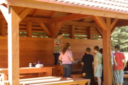 Pani Małgosia Pilipa – wychowawczyni klasy V b wiedziała, że dzieci będą miały dobrą i bezpieczną zabawę i dlatego na wycieczkę dla swojej klasy wybrała nasz plac rekreacyjno – sportowy. Było ognisko i pieczenie kiełbasek, zabawy na boiskach do piłki nożnej i do kosza. Śmiech jak ten dym z ogniska roznosił się nad wiatami.