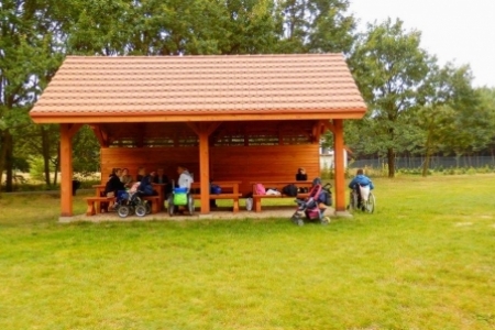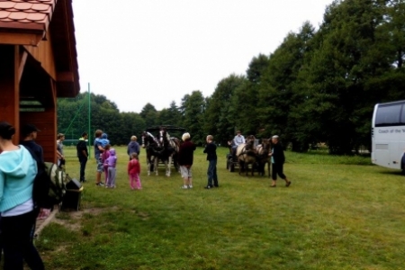 Wszyscy chwalą nasz zadbany plac i jeśli tylko znajdą wolne miejsce korzystają z rozlicznych atrakcji. Rano w sobotę przyjechała autobusem wycieczka integracyjna i spora ilość osób na wózkach bez większych kłopotów mogła korzystać z odpoczynku pod wiatami a dodatkową atrakcją były przejażdżki wozami konnymi. Przed szesnastą zaczęły schodzić się nasze dzieci na zapowiadany piknik z okazji zakończenia wakacji a na placu sportowym pojawiło się wielu turystów na naszych boiskach i siłowniach zewnętrznych. Jak zwykle oblegany był plac zabaw dla dzieci.