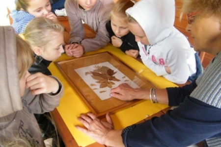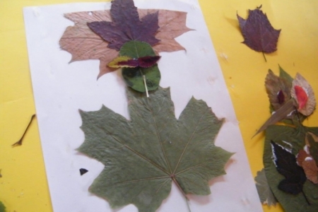 Dzieci przygotowują się do festynu. Temat festynu wynika oczywiście z charakteru naszej wioski ptasiej – będziemy żegnać ptaki na rok. Dlatego zabawa i prace plastyczne dzieci były związane z jesiennymi liśćmi, za pomocą których dziewczynki (bo tylko one przyszły) układały ptaki. Powstawały ptaki liściaki no i trochę dziwaki. Temat zaczerpnęliśmy z pomysłu Czesława Rodziewicza, którego „Liściaki” znane są we Wrocławiu i nie tylko. Dziewczynki szybko „złapały” zasadę tworzenia ptaków, choć metody stosowały różne: Marianna „na czas”, Agnieszka „na bogato”, Julka „skromnie” a Patrycja jako jedyna „w poziomie”. Dzisiaj prezentujemy to co powstało w ciągu godziny a niespodzianką będą prace, które dziewczynki przygotują w domu.