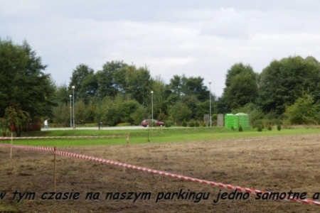 Wszystkim mieszkańcom zależałoby na tym żeby jakoś przekonać przyjeżdżających do nas by zatrzymali się na tym parkingu, ale nawet organizatorzy imprezy gminnej uznali, że od parkingu do Rudy jest okropnie duża odległość i lepiej na czas imprezy zorganizować parking na naszym pielęgnowanym placu rekreacyjno – sportowym. Wstawiono tablice informacyjne, ogrodzono taśmami boisko i nasze cztery drzewka, odgrodzono również taśmami tzw. parking, bo przecież do namiotu, gdzie odbywała się impreza nikt nie będzie chodził przez wieś, jeszcze by buty się pobrudziły - a wieś zobaczymy jak będziemy jechać autem.