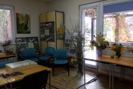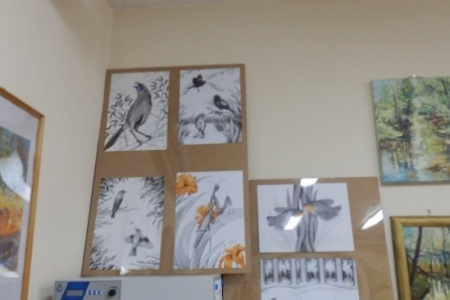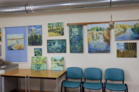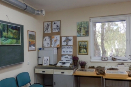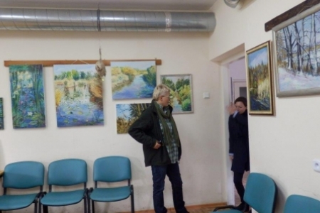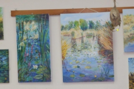 Druga wystawa też ze wspaniałym klimatem, nie tylko wkomponowana w otoczenie: zaglądające przez okna jesienne drzewa, rozłożone gniazda ptasie na stołach, kwiaty i trawy w wazonach. W obrazach malowanych przez panią Westynę Orłowską widać delikatną rękę i wrażliwość kobiecą, piękna kolorystyka i zachwycające widoki z Doliny Baryczy. Też lepiej pooglądać w spokoju i ciszy i mamy nadzieję, że wystawa nie zniknie z początkiem następnego tygodnia.