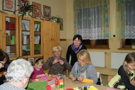 W poniedziałkowe popołudnie w Cieszynie - "Warsztaty - zwinne ręce" . Przedstawiciele Stowarzyszenia na rzecz rozwoju m. Chojnik i Kuźnica Kącka na zaproszenie Pań z Cieszyna i Dorzeca uczestniczyły w warsztatach , przekazując wiedzę związaną z robieniem kwiatów z bibuły .