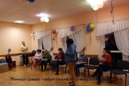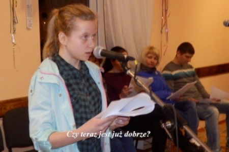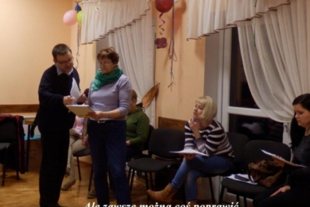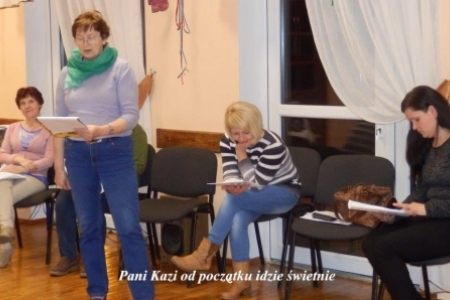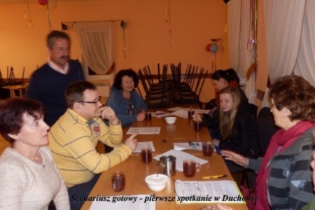 To fragment tekstu z Misterium Wielkanocnego, którego scenariusz przygotował pan Andrzej Linek a zespół złożony z mieszkańców Duchowa i Rudy Milickiej przygotowuje do wystawienia przed Świętami. Odrobinę nam łatwiej, ponieważ jest to drugie misterium, które będzie wystawiane w Duchowie przed świętami – tym razem w dniu 12 kwietnia. Zespół się powiększył – z Rudy Milickiej uczestniczyć będą trzy nowe osoby: panie Agnieszka Łukaszewska, Iza Popławska i pan Łukasz Hałabura. Pozostali mają więcej wprawy – ale tylko trochę. Dlatego pracujemy co tydzień od połowy marca. W tym czasie Pani Beata Waleriańczyk opracowuje koncepcję dekoracji i przygotowuje elementy, które połączy tuż przed Misterium. A światła i nagłośnienie oczywiście pan Zenek Czerniawski. Tekst jest pięknie opracowany i dlatego musimy nad nim solidnie popracować żeby nic nie zepsuć a na końcu dostarczyć sporo wrażeń odbiorcom.