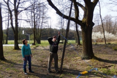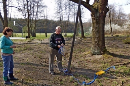 Nośność huśtawki jest ograniczona do 70 kilogramów a wysokość huśtania ogranicza rozsądek. Huśtamy się na własną odpowiedzialność i staramy się jak zwykle urządzenia nie zniszczyć. Powiesili dla nas huśtawkę pani Regina i pan Henryk Kołodziejczykowie i jako pierwsi wypróbowali – przypominając sobie jak to było w dzieciństwie.