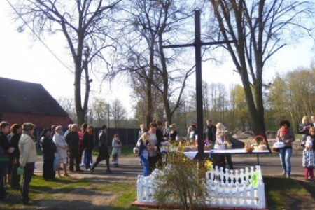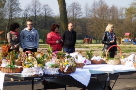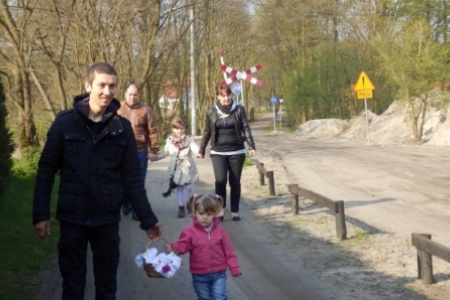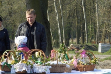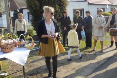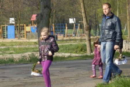 W tym roku w Wielką Sobotę przyszła do nas również piękna wiosna ze słońcem i drzewami obsypanymi kwiatami. Najbardziej ze swoich koszyczków pięknie ustrojonych były dumne dzieci. Maja i Jula pierwszy raz samodzielnie niosły każda swój koszyk.