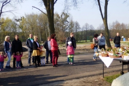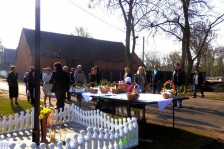 Jeszcze w XIX i na początku XX wieku w Wielką Sobotę ksiądz chodził od domu do domu i święcił pokarmy ustawione na największym stole przykrytym białym obrusem, udekorowanym kwiatami i bukszpanem. Dziś jedzenie nosimy do kościoła w maleńkich koszyczkach, lub koszyczki (tak jak w Rudzie Milickiej) ustawiamy pod krzyżem a ksiądz przyjeżdża poświęcić pokarmy i wodę. Jednak symbolika potraw pozostała ta sama. Szerzej o tym: http://aktywni.barycz.pl/index_duchowo.php?dzial=6&kat=17&art=64