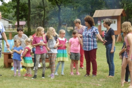Zabawa dla dzieci zaplanowana przez p. Sołtys i Radę Sołecką jako odkładany z powodu złej pogody Dzień Dziecka odbyła się pod koniec czerwca. Dorośli przygotowali nagrody i słodycze a trzy dziewczynki ze Stawna organizowały zabawy i konkursy dla dzieci. Zajęły się również bardzo modną ostatnio zabawą – malowaniem dziecięcych buź w przeróżne wzory. Powstawały zwierzątka, motylki, a czasem „poważne” makijaże. Jako malarka sprawdziła się również jedna z mam. Każde zwycięstwo w konkursie – stosownie do możliwości dziecka – było nagradzane przez panią Sołtys symboliczną nagrodą. Chłopcy pomimo wielu atrakcji preferowali piłkę. Wszystko odbywało się przy ognisku pod wiatami i na utwardzonym placu oraz ogródku zabaw dla dzieci w Rudzie Milickiej.