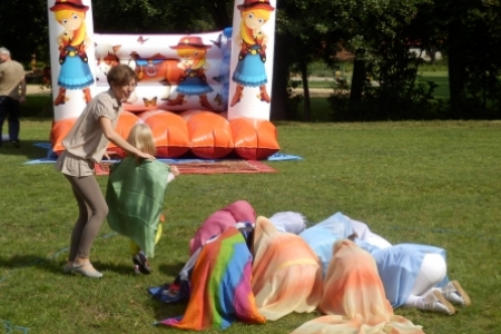 Pani Joanna Mielnik całe wakacje bawiąc się z naszymi dziećmi uczyła je przepięknych inscenizacji opartych na tajemniczym pięknie przyrody i baśni. Dzieci były w różnym wieku - od maluchów do trochę starszych dziewczynek ale widać w tych występach serce nauczycielki i wykonawców.