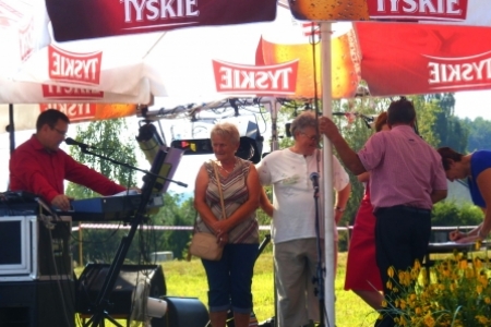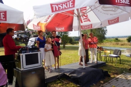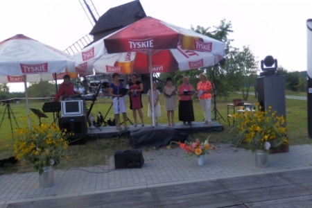 To wszystko za mało gdyby nie było grupy bardzo aktywnych i utalentowanych mieszkańców z panem Andrzejem Linkiem na czele, który odpowiednie inscenizacje przygotowuje, sam gra i śpiewa i mobilizuje do takiej działalności sporo ludzi – nawet kilku osobom z Rudy Milickiej po sąsiedzku udało się uczestniczyć w „Święcie wiatraka i misterium chleba”. Jak dodamy do tego wernisaż malarski Pani Bronisławy Nowackiej to niech żałuje ten co na tej imprezie nie był. A było tak: