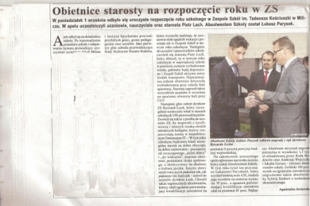 Można śmiało powiedzieć, że Łukasz tę myśl konsekwentnie realizował przez okres swojej nauki w Technikum w Zespole Szkół im. Tadeusza Kościuszki w Miliczu. Z wyróżnienia tytułem Absolwenta Roku bardzo jesteśmy dumni, tym bardziej że w ubiegłym roku nasza witryna Rudy Milickiej między innymi dzięki Łukaszowi dostała pierwszą lokatę w konkursie Aktywni w Dolinie Baryczy.