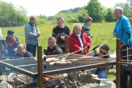 Środowiskowy Dom Samopomocy w Żmigrodzie ośrodek wsparcia pierwsza grupa z projektu " Po zdrowie na szlak Rudobarycki". Było obecnych 28 osób były to osoby niesprawne i inwalidzi. Był Pan na wózku dwie osoby o kulach a reszta z różnymi chorobami,przeważnie wszystkie osoby potrzebowały opieki drugiej osoby. Obecnych było 6 opiekunów.