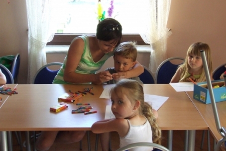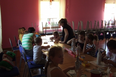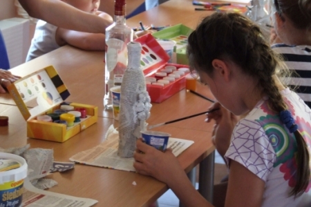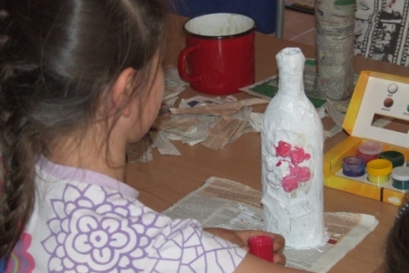 Tematem przewodnim dzisiejszych naszych zajęć plastycznych były motyle malowane przez najmłodsze dzieci. Tydzień temu starsze dzieci wykonywały wazony z butelek i oklejały gazetą. W tym tygodniu kończyły wazony malując je farbami plakatowymi.
