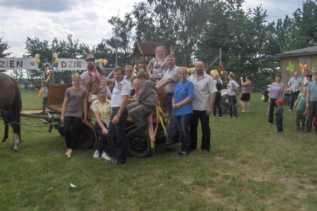 Już przed godz. 15 na boisko, zaczęły tłumnie przybywać dzieci razem ze swoimi rodzicami i dziadkami, na które czekała bryczka ciągnięta przez dwa piękne rumaki a woźnicą był pan Benedykt M z Sulmierzyc. Tuz po 15 nasz DJ Rysiu przywitał wszystkich zebranych na boisku, po czym rozpoczęły się licznie przygotowane atrakcje. Najmłodsi nasi milusińscy zrobili ogromne koło z rodzicami łapiąc piłki, które stawały się ich włąsnością. Dla nieco starszych dzieci odbyły się slalomy z piłeczką tenisową na otwartej dłoni, oraz w workach. Nie brakowało chętnych dziewcząt w konkursie "Mam Talent". Posileni lodami i smacznymi pączkami z Piekarni "Smak" Cieszków przystąpilismy do przeciągania liny. W zmaganiach tych uczestniczył ks. Proboszcz (dzięki Jego wsparciu mamusie wygrały przeciąganie liny z tatusiami). Dużo emocji wzbudził pociąg ' Do Ujazdu" którego głownym napędem był sołtys K. Maryniak. Na stacji docelowej na wszystkich czekały lody. Posileni lodami i smacznymi pączkami z Piekarni "Smak". Przygotowaliśmy upominki , które zostały oznaczone numerami, następnie dzieci losowały dla siebie nagrody. Żadne dziecko nie zostało bez prezentu.Dla dorosłych była kawa , dla wszystkich napoje i ciastka.