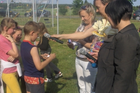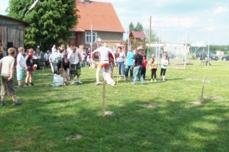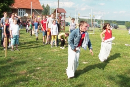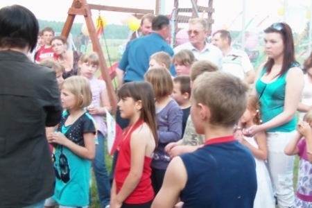 Dla licznie zgromadzonych tatusiów, zorganizowaliśmy konkurs "rzut kaloszem", udział wzięło 10 panów, których 5-ciu otrzymało nagrody rzeczowe, pozostali słodkie upominki. Wszystkie konkurencje były nagrodzone słodkościami, a dzieci były chętne do wszystkich konkurencji. Na zakończenie upiekliśmy kiełbaski na ognisku. Impreza się udała pogoda dopisała a przede wszystkim sponsorzy, którymi byli: p. B. Broda, p. Ż. Błaszczyk, p. I.Curyk, p. A. Patryjas, p. E. Miłkowska, p. H.Kostka, Piekarnia "Smak", Urząd Gminy Cieszków. Bank Spółdzielczy Milicz, Gminne Centrum Kultury. Najbardziej zaangażowana w pozyskanie sponsorów była Iwona Rotman. Sposród zaproszonych gości swoją obecnością zaszczycił nasze dzieci i nas Ks. Proboszcz L. Wilczyński oraz reporter lokalnej prasy p. S. Pałasz.