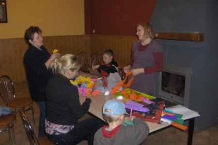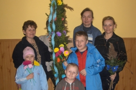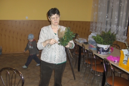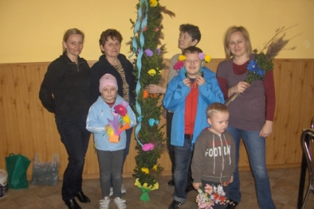 W miniony piątek spotkaliśmy się w naszej świetlicy aby zrobić palmę wielkanocną na konkurs zorganizowany przez GCK Cieszków. Każdy przyniósł co miał i wzięliśmy się do pracy. Przyszly dzieci, młodzież i starsi. Każdy robił to co umiał. Dzieci rysowały laurki i pisanki a starsi robili palmę. Przy pracy mieliśmy możliwośc do porozmawiania o aktualnych sprawach.
