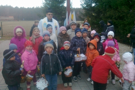 Dzisiaj o godz. 9.30 ksiądz L.Wilczyński poświęcił pokarmy mieszkańcom naszej miejscowości. Na święconce nie zabrakło dzieci, młodzieży i dorosłych.