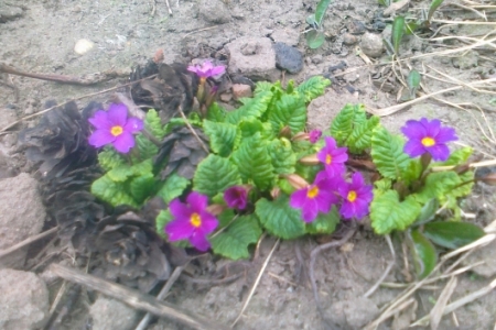 Korzystając z ciepłego poranka przeszłam przez naszą wioskę w poszukiwaniu oznak wiosny. Bo ta kalendarzowa wprawdzie nadeszła ale tak naprawdę to pogoda cały czas nas zaskakuje. Już w pierwszym domostwie napotkałam pierwiosnki, dalej niebieskie fiołki, złoty deszcz, sasanki itp. Wracając napotkałam taż bociana, który spokojnie wygrzebywał pokarm z ziemi.