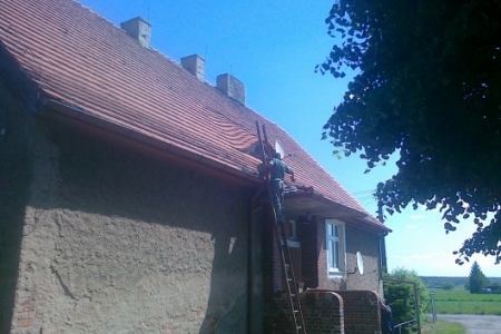 W czwartek 24 maja o godz. 9.00 zebrało sie kilku panów wraz z naszym sołtysem przed świetlicą żeby naprawić dach na wejściu do niej. Dachówki już ledwo co się trzymały, większy powiew wiatru i mogło grozić to ich upadkiem a co za tym idzie jakimś przykrym wypadkiem. Póki co dach naprawiony i możemy być spokojni o bezpieczeństwo mieszkańców.