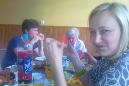Nasze kochane mamy spotkały się w piątek w świetlicy. Punktualnie o godz. 19.00 przywitała mamy pani dyrektor GCK W Cieszkowie H. Niedbała. Złożyła życzenia spokoju, radości, adoracji mężów każdego dnia, pociechy z dzieci, po czym lampką szampana wzniosłyśmy toast za zdrowie mam. Następnie podano kolację( mięsa, ziemniaki,surówki) oraz kawę, ciasto, owoce."Dzień Mamy" przeżyłyśmy w bardzo radosnej atmosferze a i chwil wzruszających nie zabrakło.