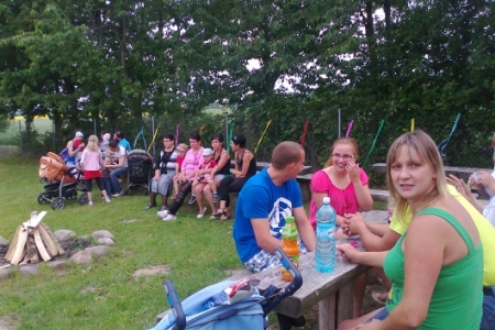 Przez deszcz nie można było jak co roku smażyć kiełbasek na ognisku, ale i ztym organizatorzy poradzili sobie świetnie. Kiełbaski były z patelnii. Wszystkie dzieci dostały prezenty..