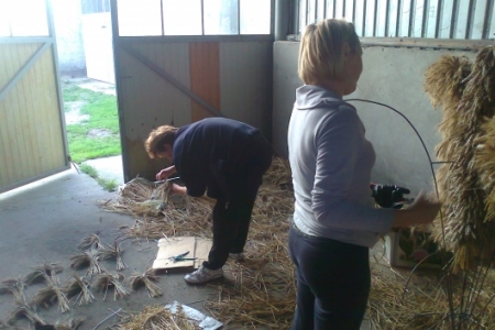 Kilka pań z naszej miejscowości spotykało się kilka dni aby stworzyć wieniec na dożynki. Szybko i sprawnie palce naszych pań dobierały kosmyki zbóż i pletły ten nietypowy wieniec....
