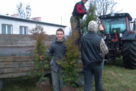 Pan Błaszczuk Mariusz za sponsorował 33szt. Tui, Jodła 4 szt. Kosodrzewina 2 szt. Świerk 8 szt. A Pani Dajczman Janina zaoferowała napoje. Za co serdecznie dziękuję darczyńcom jako Sołtys. Liczę że akcja powiodła się sprawnie i zostało wykonane prawidłowo