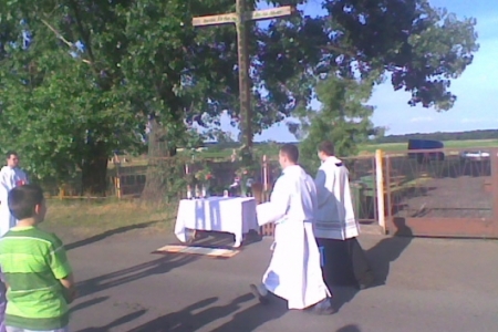 Poniedziałkowy dzień ZIELONYCH ŚWIĄT rozpoczęliśmy przygotowaniem krzyży w Nowym Zamku i w Nowym Grodzisku jako ołtarze. Ksiądz odprawił mszę o urodzaje prowadząc procesję do Nowego Grodziska święcąc pola, pod krzyżem w Nowym Grodzisku pobłogosławił wiernych. Zaczęły się mecze piłki nożnej o skrzynkę piwa, grali Godnowa Nowy Zamek Tworzymirki i Nowe Grodzisko, było ognisko i grill