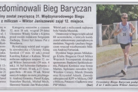 Wśród Miliczan Najlepsze miejsce 12 zajął Wiktor Janiszewski 39 min. 4 sek. 14 zajął Był Sylwester Farbaniec czasem 40 min. 10 sek. a 17 Grzegorz Bela zamieszkały we wsi Średzina Sołectwo Nowy Zamek z czasem 40 min. 59 sek.