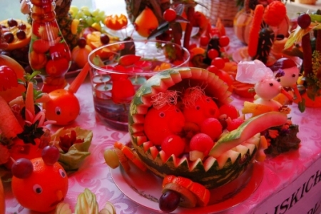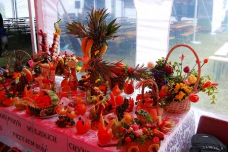 Po pokazie osoby zainteresowane przepięknymi dziełami naszych pań z Koła Gospodyń Wiejskich otrzymały w prezencie wykrojone rzeźby z warzyw i owoców. Trzeba przyznać, iż nasze panie z KGW tworzą prawdziwe „dzieła sztuki”, obok których nie można przejść obojętnie. Członkinie KGW po raz kolejny stanęły na wysokości zadania, są mistrzyniami w dziedzinie carvingu – wystarczy spojrzeć na kilka zdjęć zamieszczonych w galerii, by się o tym przekonać.