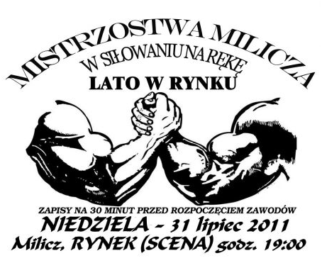 godz. 19:00 MISTRZOSTWA MILICZA w ARMWRESTLINGU (SIŁOWANIE NA RĘKĘ).