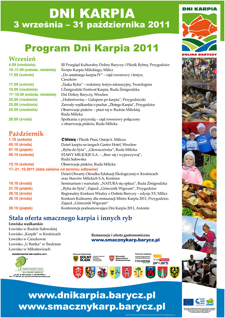 Unia Europejska, Europejski Fundusz Rolny na rzecz Rozwoju Obszarów Wiejskich. Europa inwestująca w obszary wiejskie. Zadanie realizowane przez Stowarzyszenie „Partnerstwo dla Doliny Baryczy” w ramach działania 4.31 Funkcjonowanie LGD, nabywanie umiejętności i aktywizacja, współfinansowane ze środków publicznych i UE w ramach osi 4 - LEADER Programu Rozwoju Obszarów Wiejskich na lata 2007-2013.