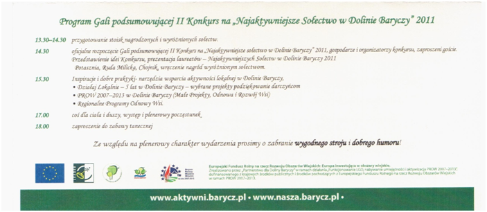 W Gali podsumowującej II Konkurs na „Najaktywniejsze Sołectwo w Dolinie Baryczy”