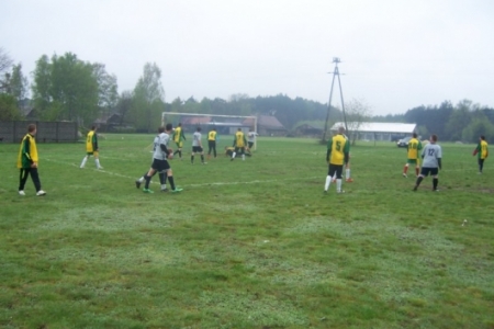 O godzinie 13.00 Rozpoczęła się dalsza część majówki, mianowicie turniej piłki nożnej o puchar Prezesa OSP. Pogoda nie dopisała, gdyż przez cały czas padał deszcz, dlatego większość zaproszonych drużyn nie dojechała. Przyjechała za to reprezentacja klubu piłkarskiego Zawisza Sośnie, która zmierzyła się z miejscową drużyną. Mecz zakończył się wynikiem 7-5 dla drużyny z Sośni, choć na początku przegrywali oni 2-0. Sędzią był druh Tomasz Pawelec.