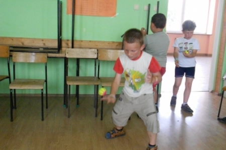 Za aktywny udział w zajęciach tego dnia wszystkie dzieci otrzymały skromne nagrody (piłki i kolorowe opaski na rękę).