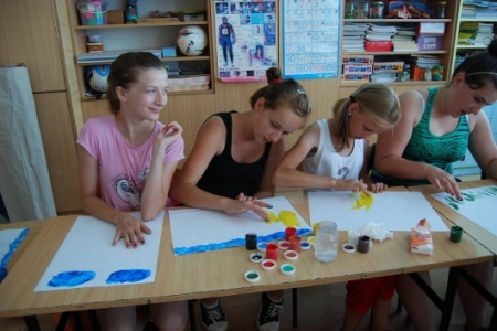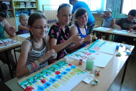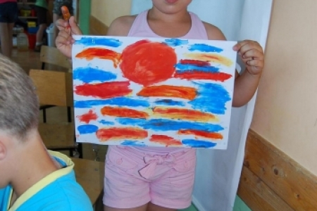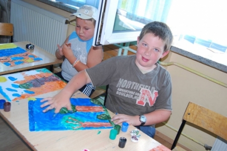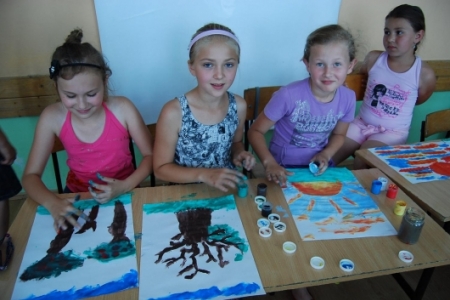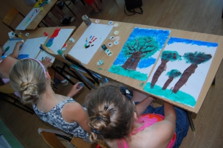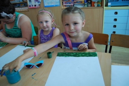 6. lipca był dniem podczas którego dzieci uczestniczyły w zajęciach plastycznych, malując dłońmi pejzaże i przeróżne malownicze motywy.