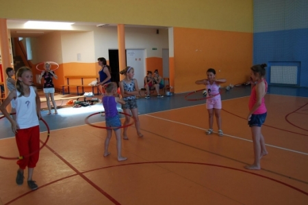 Po posiłku dzieci brały udział w grach i zabawach na sali gimnastycznej przy Zespole Szkół w Chynowej.