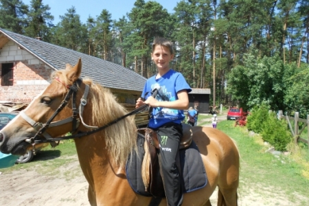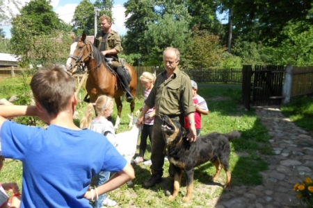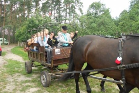 W dzień ósmy półkolonii tj. 12 lipca br. dzieci wymaszerowały spod Zespołu Szkół w Chynowej na Leśniczówkę Klady. Tam spotkały się z leśniczym Jerzym Kątnym, który zapoznał dzieci z tajnikami przyrody. Dzień ten zapewne dzieciom na długo pozostanie w pamięci, gdyż był obfity w liczne atrakcje konne, w postaci przejażdżki bryczką, przejażdżki konnej w siodle czy też strzelania z łuku i spaceru po lesie.