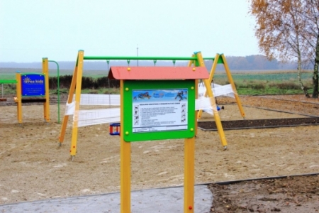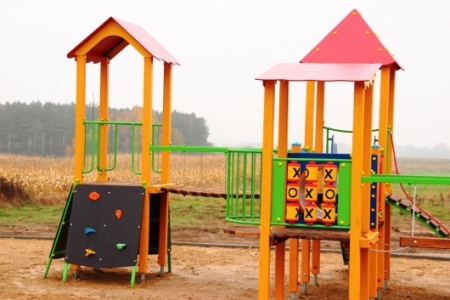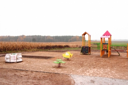 Na placu zabaw dla dzieci z urzadzeniami do rekreacji dla dorosłych, za wiatrakiem Bronisław" i Chata Młynarza, zainstalowano już większość urządzeń.
