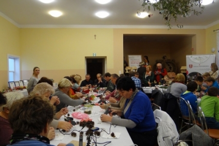 6 listopada 2014 w świetlicy wiejskiej,gościliśmy 30 osobową,grupę studyjną z Lokalnej Grupy Działania (LGD) Kraśnik z okolic Lublina,która zwiedzała tematyczne wsie w Dolinie Baryczy.Grupę przyjęli : Marcin Mruk,prezes Stowarzyszenia "Leśne Dziady" , Sołtys Wsi Dziadkowo Aniela Błaszczyńska , Wójt Gminy Cieszkowo Ignacy Miecznikowski, oraz aktywni mieszkańcy naszej wsi.Marcin Mruk przedstawił gościom,program i założenia : Dziadkowo wieś "Leśnego Dziada", na który składają się : 1) oferta budowania wsi od pomysłu , 2) konkurs na najaktywniejsze sołectwo , 3) założenia stowarzyszenia , 4) nasze działania , 5) na działaniach ( w tym Działaj Lokalnie) , 6) partnerach i zaangażowaniu i 7) planach na kolejny czas.Dla grupy studyjnej,przygotowano warsztaty z rękodzieła artystycznego,na których robiono z szyszek figurki zwierząt.W trakcie warsztatów,przygotowano poczęstunek z potraw lokalnych,takich jak : zupa "dziada" i przysmak "dziadowski" oraz specjały,przygotowane przez naszych mieszkańców.Domowy placek upiekły : Maryla Szymańska i Krystyna Kołodziej , zupę "dziada" Aniela Błaszczyńska , przysmak "dziadowski" Anna Mruk i Danuta Kleczewska.Pomoc w obsłudze grupy,podczas warsztatów zapewnili : Aniela Błaszczyńska , Sylwia Męcel , Anna Mruk , Paulina Szczygiecka , Anna Kępa , Maryla Szymańska , Justyna Kubik , Marcin Mruk i Radosław Galewski.Nasi Goście,zadowoleni byli z przyjęcia,aktywnego uczestnictwa w warsztatach i poczęstunku.Dziękujemy Gościom za przybycie i mieszkańcom naszej wsi za okazana pomoc.