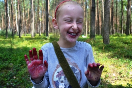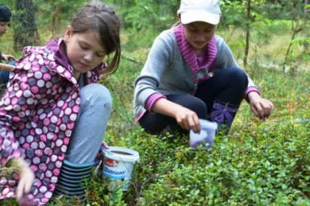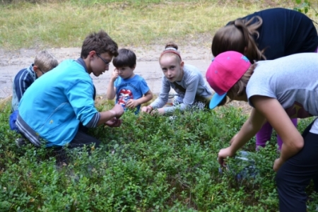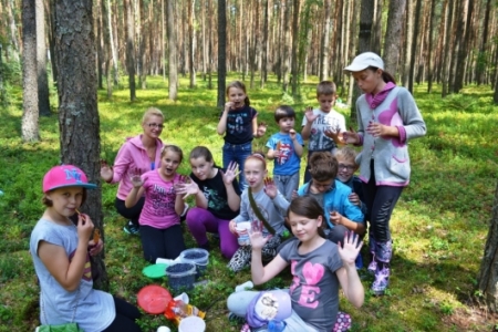 Pogoda sprzyjała wędrówce po lesie, wszystkie dzieci były zachwycone tamtejszą ciszą, zielenią oraz skarbami natury jakimi są jagody . Trochę trzeba było się na chodzić, żeby nazbierać pełne wiaderka jagód i najeść się do syta pysznymi owocami . Wszyscy ochoczo zbierali dorodne owoce wiedząc, że po powrocie zostaną wykorzystane do przygotowania deserów oraz kompotów. Była to owocna wyprawa do lasu po dary natury. Chętnych na kolejną wędrówkę nie brakuje.