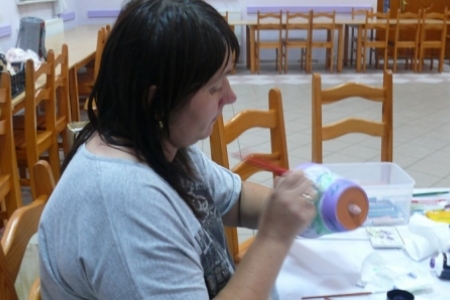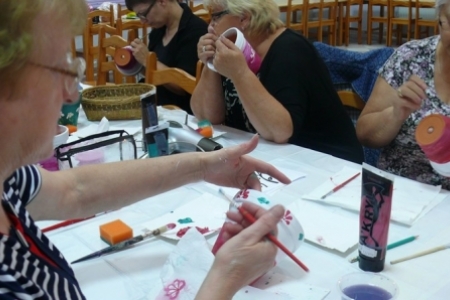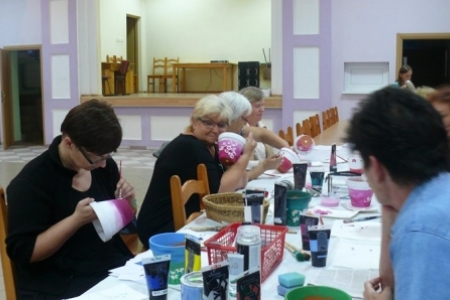 Do dyspozycji Panie miały farby, szablony roślinne, doniczki i własną wyobraźnię, i umiejętności. Kolejny raz okazało się, że w naszych Paniach drzemią wielkie talenty i powstały piękne, różnorodne doniczki, w których "zamieszkają" - jak na zielarską wioskę przystało - cudnie pachnące zioła!