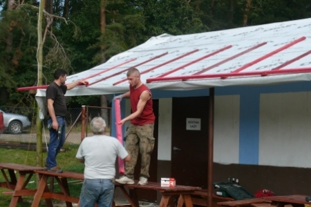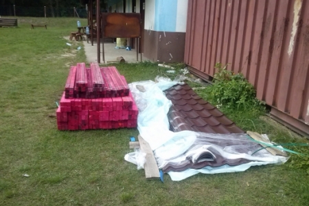 Został wymieniony również dach – blachodachówka została zakupiona z funduszu sołeckiego, łaty i kontrłaty przekazał nam nieodpłatnie lokalny przedsiębiorca, pozostałe zakupy w kwocie 1.500 zł dokonało Stowarzyszenie „Aktywne Łazy” z uzyskanych darowizn. Prace zostały wykonane przez mieszkańców nieodpłatnie.
